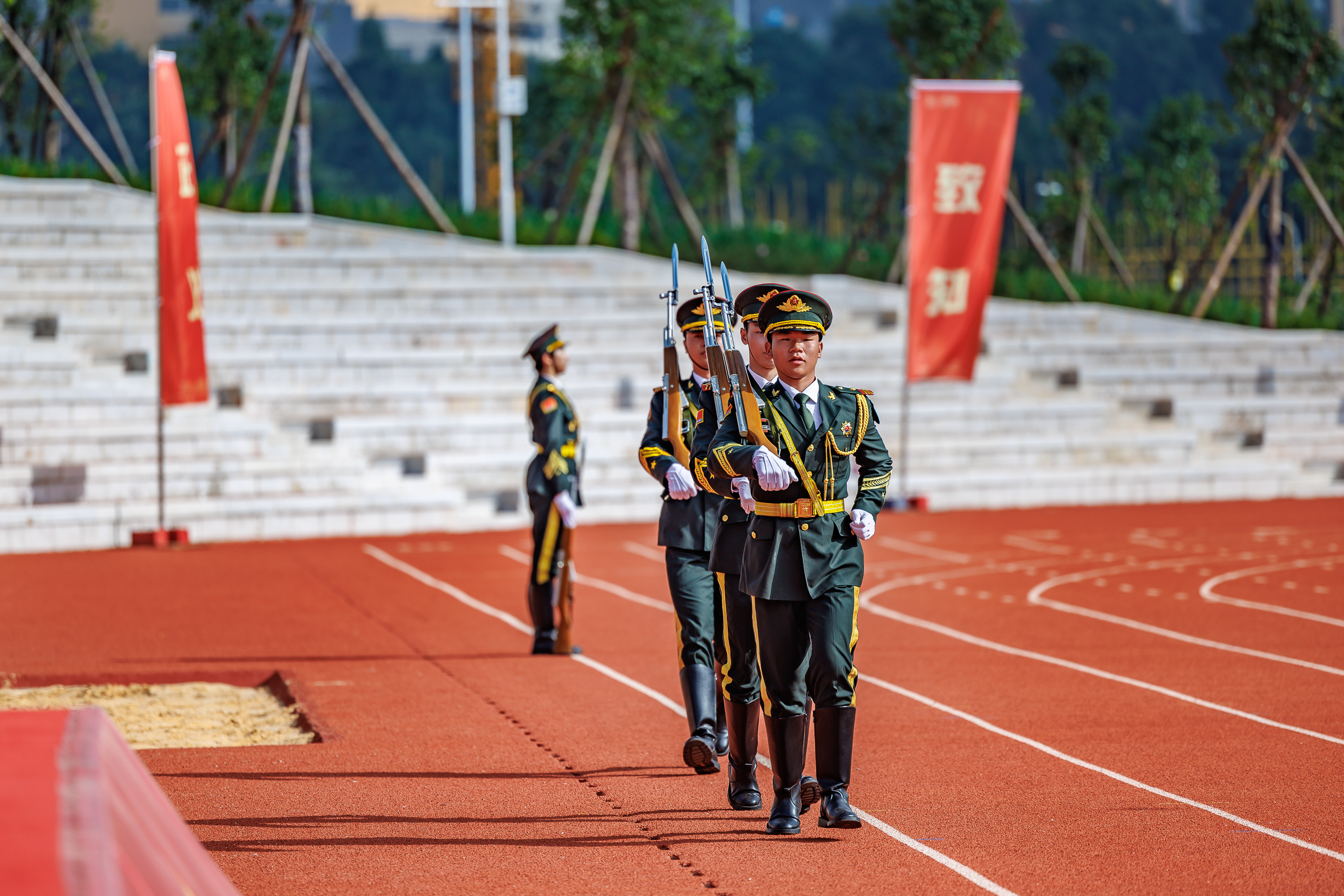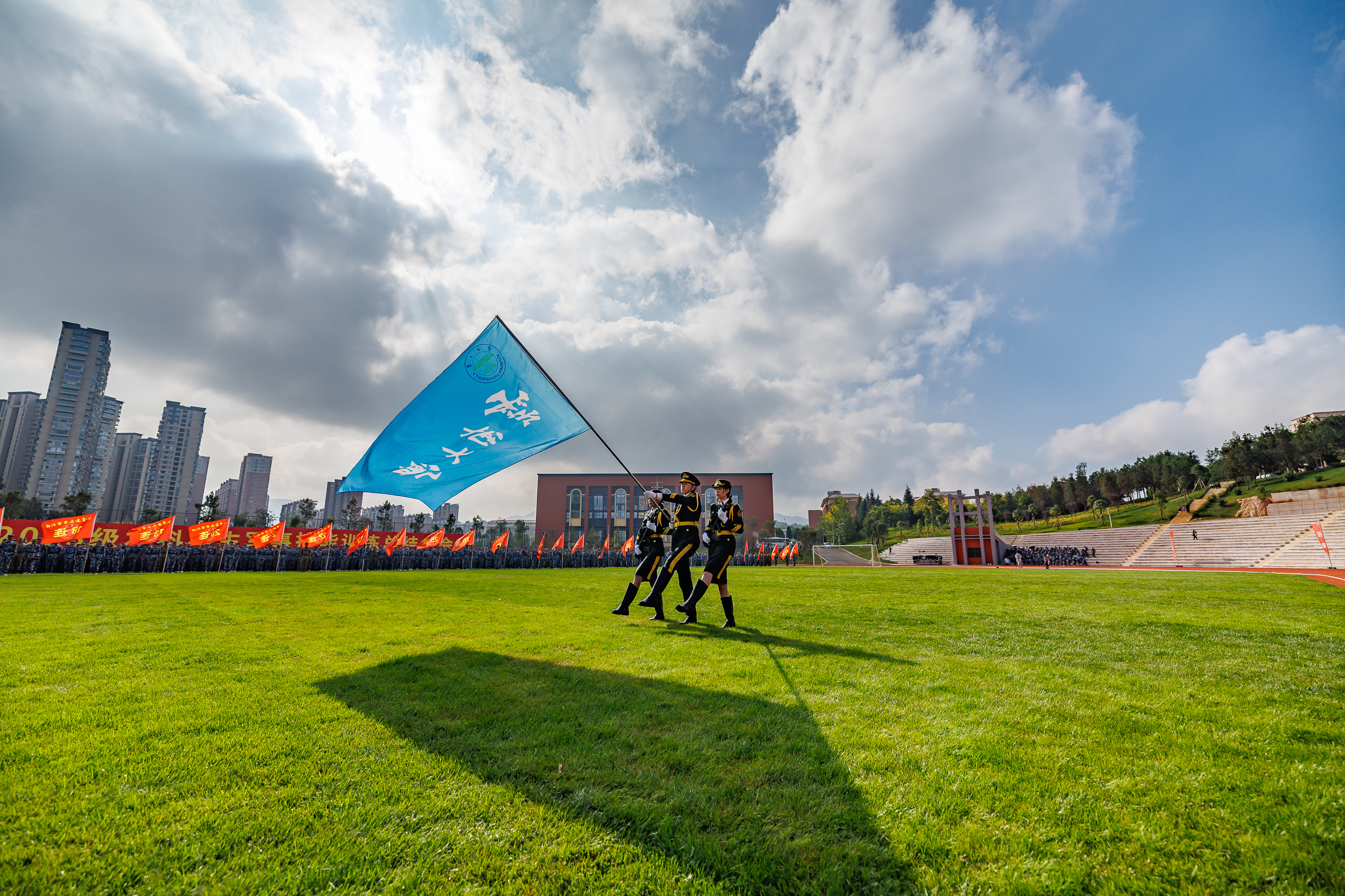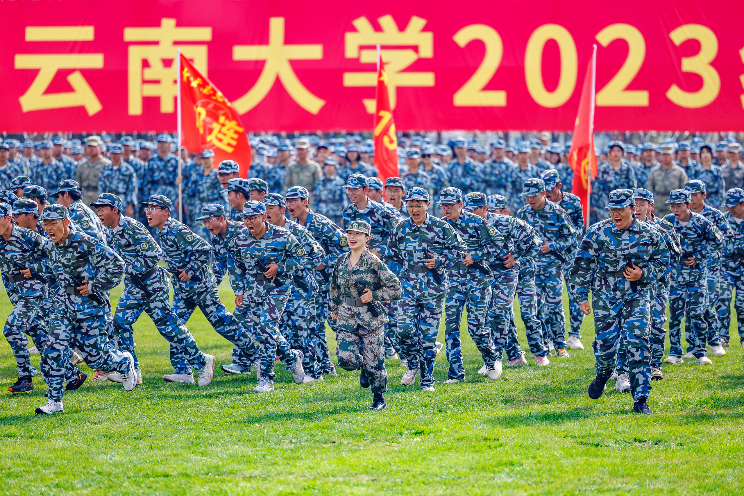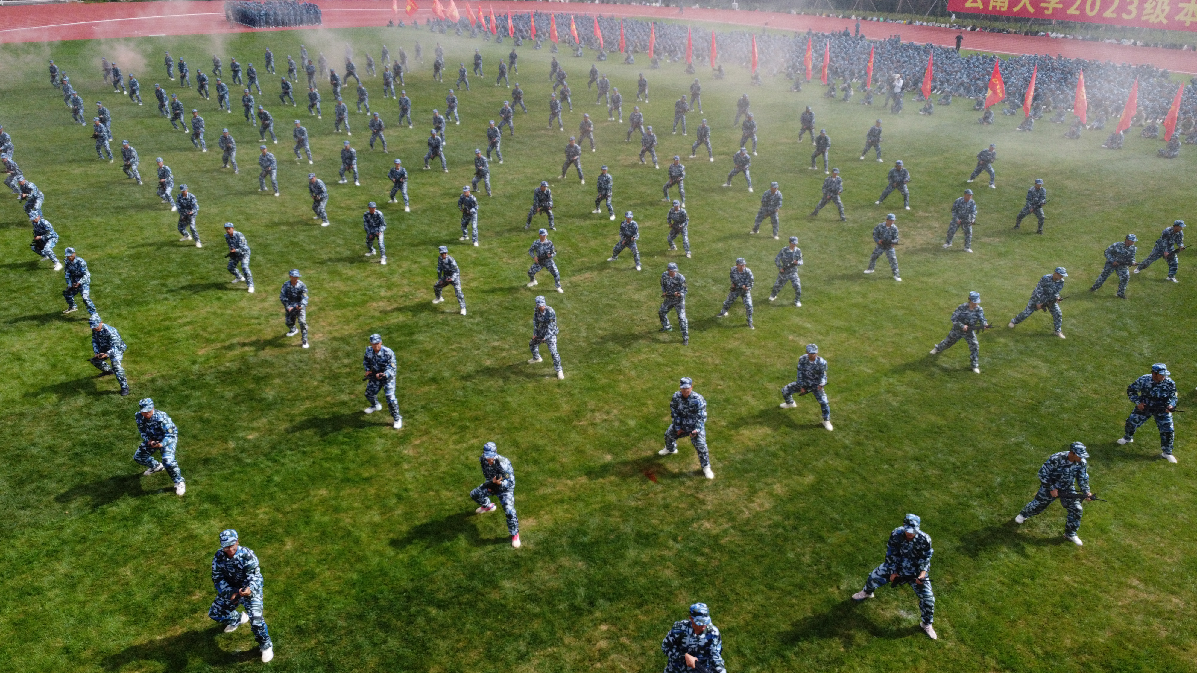 2023年9月16日,云南大学2023级本科学生军事技能训练总结大会在呈贡校区文体中心田径场举行。