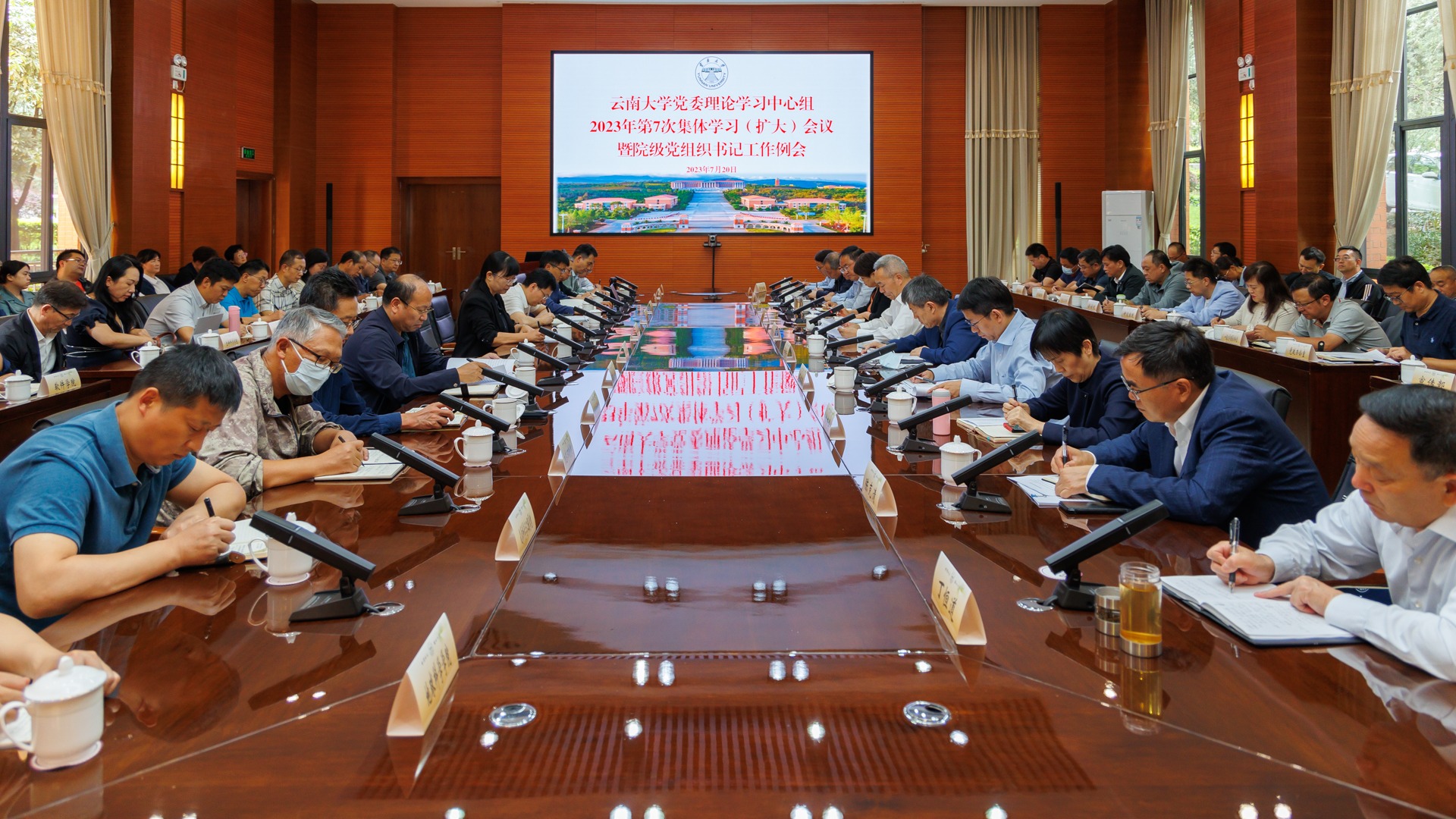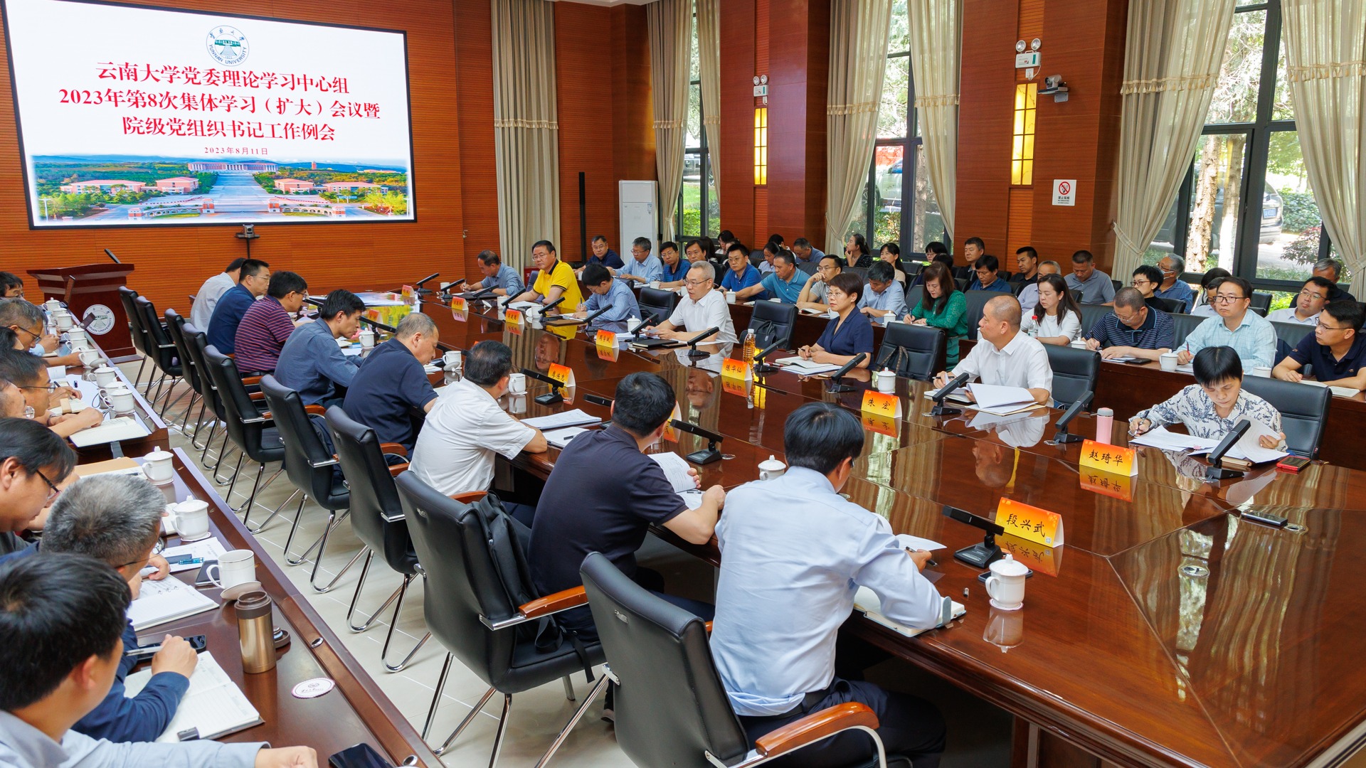 2023年8月11日,云南大学党委理论学习中心组2023年第8次集体学习(扩大)会议暨主题教育工作推进会召开,校党委书记周学斌主持会议。会议集中学习了习近平总书记对党的建设和组织工作作出的重要指示,习近平总书记近期重要讲话、重要指示批示、重要文章精神。会议学习传达了省委十一届四...