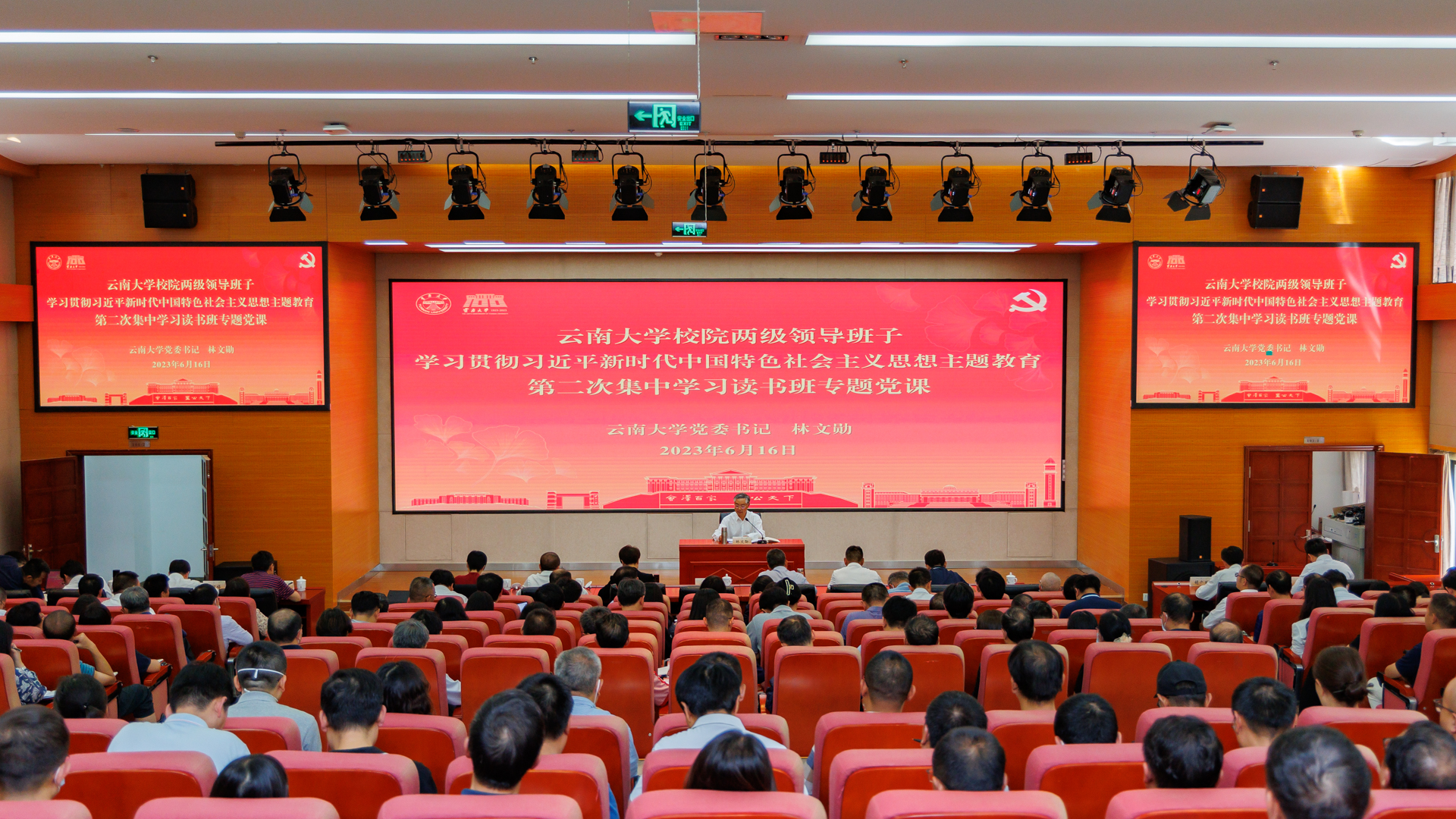 2023年6月12日至16日,云南大学举行了校院两级领导班子学习贯彻习近平新时代中国特色社会主义思想主题教育第二次集中学习读书班。16日下午,校党委书记林文勋为第二次集中学习读书班讲授专题党课。